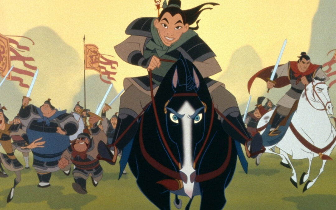 A Chinese maiden disguises herself as a man so that she can fight invading Huns. During an ambush, Mulan proves herself to be a brave and fearless leader. Copyright Walt Disney Pictures.